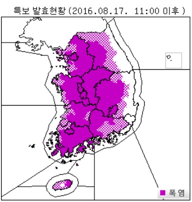 8월 5일 수요일, 아침 날씨입니다.서울·경기·강원·충청 지방에 비가 예상됩니다.